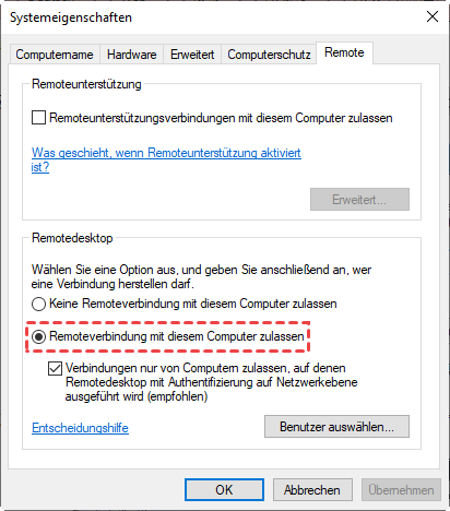 Wenn RDP nicht funktioniert, prüfen Sie zunächst, ob der Computer, auf den Sie zugreifen möchten, die Remotedesktopverbindung zulässt. Folgen Sie dazu den unten aufgeführten Schritten.