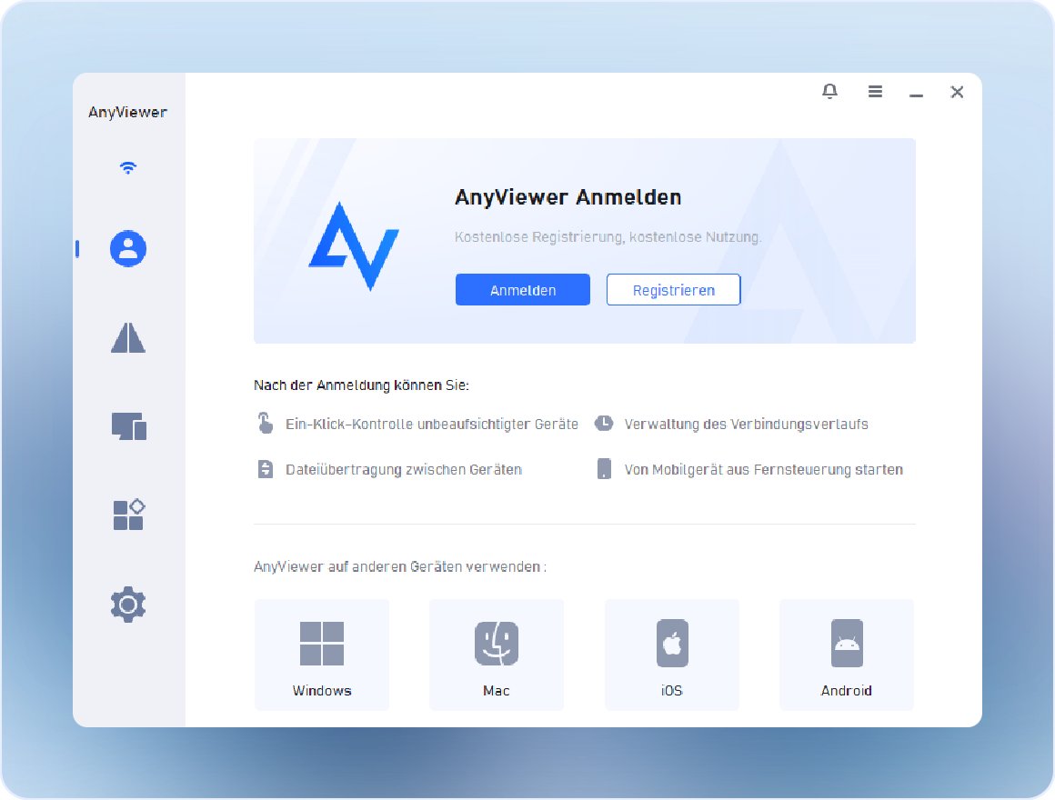Downloaden und installieren Sie AnyViewer auf allen gewünschten Geräten. Erstellen Sie ein Konto und melden Sie sich auf jedem Gerät mit denselben Zugangsdaten an.