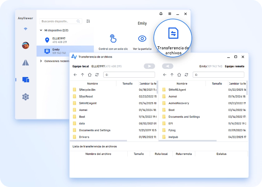 AnyViewer aumenta la productividad con transferencias ultrarrápidas y acceso remoto, eliminando barreras de ubicación. Ahorra tiempo y enfócate en tareas clave, sin retrasos por descargas lentas ni herramientas adicionales.