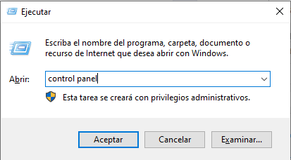 Paso 1. En Windows 10, abre la ventana Ejecutar, escribe "control panel" para abrir el Panel de Control.