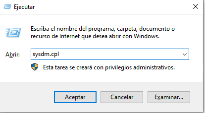 Paso 1. En Windows 10, presiona Win+R, luego escribe "sysdm.cpl" en la barra de entrada y presiona Enter para abrir Propiedades del sistema.