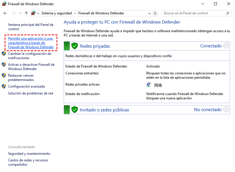 Solución 2. Permitir el Escritorio Remoto a través del Firewall de Windows en Windows
