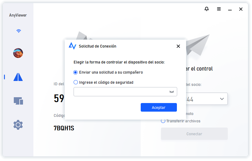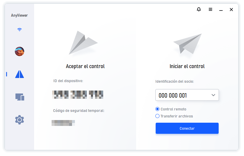 Paso 2. En otro ordenador, ejecute AnyViewer. Ingrese el ID del dispositivo compartido y haga clic en Control remoto.