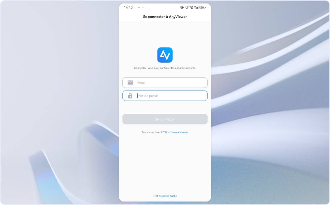 Téléchargez AnyViewer sur votre appareil Android et ouvrez l'application. Connectez-vous en utilisant les mêmes informations d'identification de compte que sur votre ordinateur.