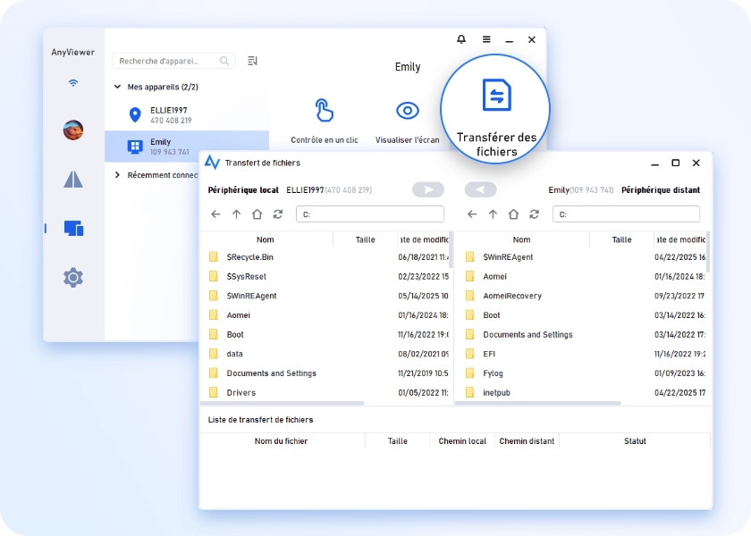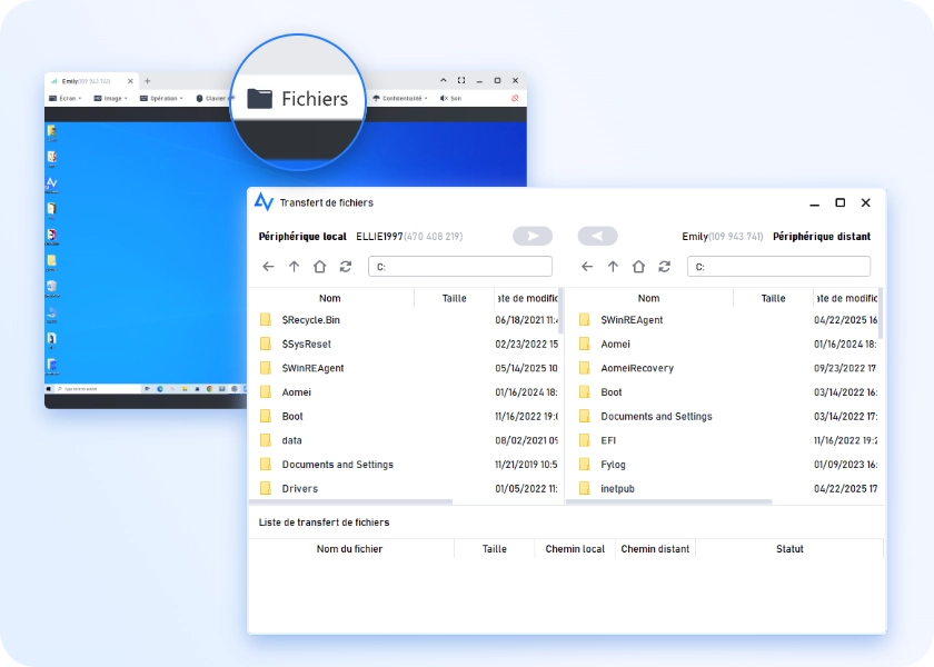 AnyViewer facilite le transfert à distance de gros fichiers, comme des vidéos ou des données, sans avoir besoin d’utiliser des emails ou d’autres logiciels aux limites de taille et aux procédures complexes.