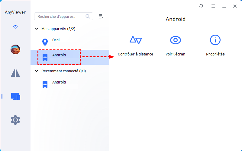 Cette méthode est idéale si vous recherchez une solution rapide, simple et efficace pour afficher l'écran de votre téléphone sur votre PC. AnyViewer permet non seulement de dupliquer l'écran mais aussi de contrôler votre appareil à distance, ce qui en fait une option polyvalente.