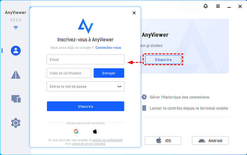 2. Ouvrez AnyViewer sur les deux appareils. Créez un compte AnyViewer.