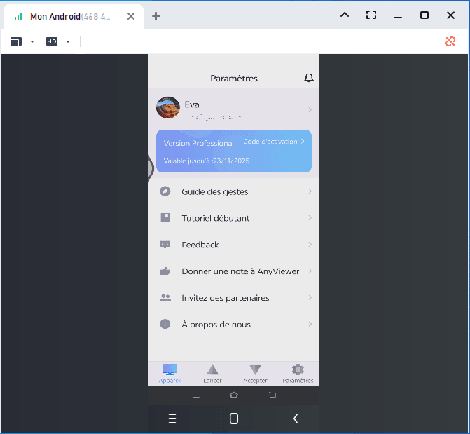 AnyViewer est particulièrement pratique si vous souhaitez non seulement voir l'écran, mais aussi interagir avec les applications de votre téléphone. C’est une solution idéale pour les présentations, la gestion de fichiers, ou même l’assistance technique.