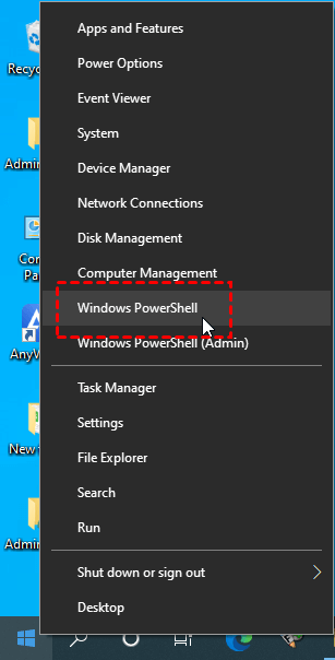 Étape 1. Cliquez avec le bouton droit sur Démarrer, puis choisissez Windows PowerShell.
