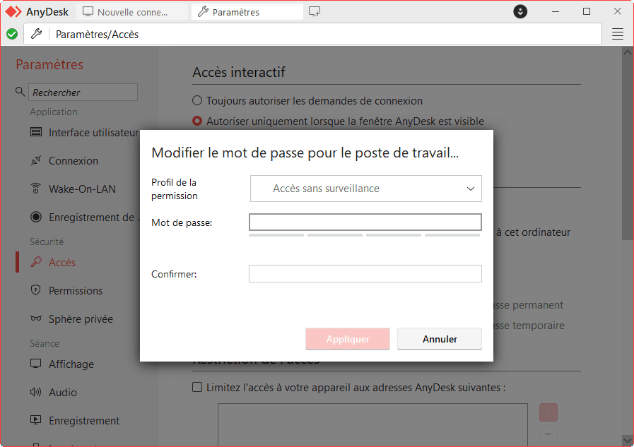 Étape 7 : Pour un usage fréquent, ouvrez les paramètres d’AnyDesk et activez l’option Accès sans surveillance.