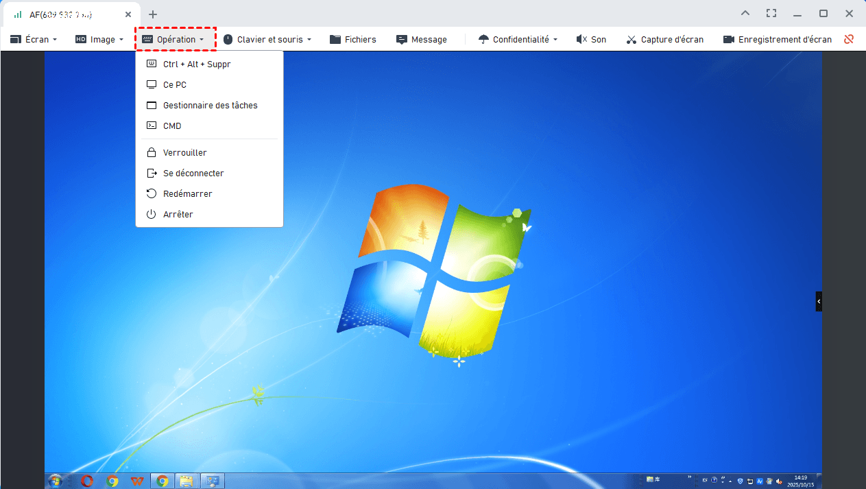 Étape 3. Après l’établissement de la connexion, une barre d’outils apparaîtra en haut de la fenêtre. Cliquez sur « Opération », puis sélectionnez « Ctrl + Alt + Suppr ».