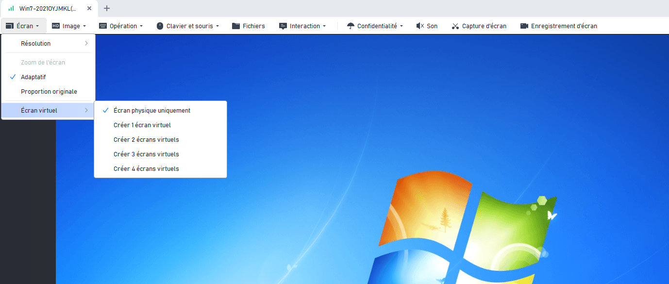 Dans une session classique, vous êtes limité aux écrans physiques du PC distant. S’il ne dispose que d’un seul écran, vous devez jongler entre de nombreuses fenêtres.