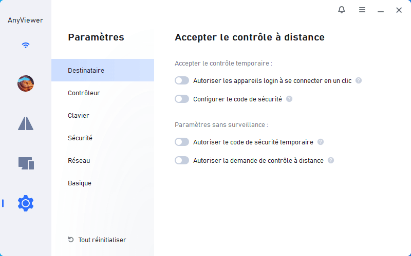 Dans AnyViewer, si vous ne souhaitez pas que d'autres personnes contrôlent votre ordinateur à distance, vous pouvez effectuer quelques configurations simples dans les paramètres.