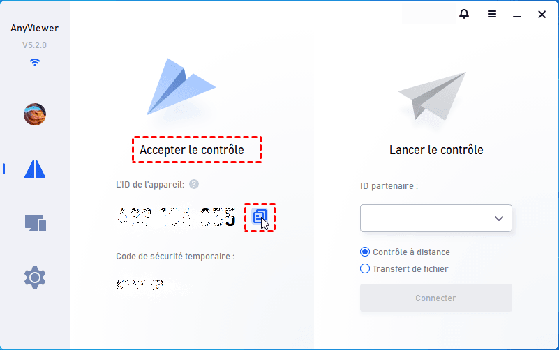 Remarque : Pour contrôler un ordinateur qui n'est pas connecté au même compte, vous pouvez le faire en entrant le code de l'appareil et le code de sécurité temporaire.
