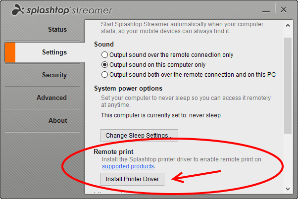Tout d'abord, assurez-vous que Splashtop Streamer est à jour sur l'ordinateur distant. Ensuite, activez l'impression à distance dans les paramètres de Splashtop. Pendant la session à distance, sélectionnez « Imprimante à distance Splashtop » lors de l'impression. La fenêtre d'impression locale devrait alors apparaître sur votre ordinateur.