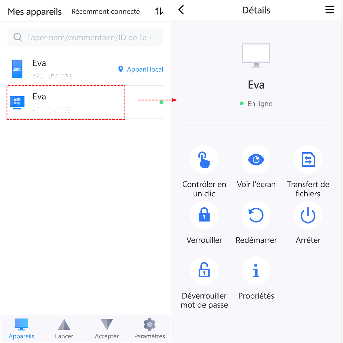 Étape 3 : Pour accédez à votre PC depuis un smartphone, cliquez sur Contrôler en un clic.