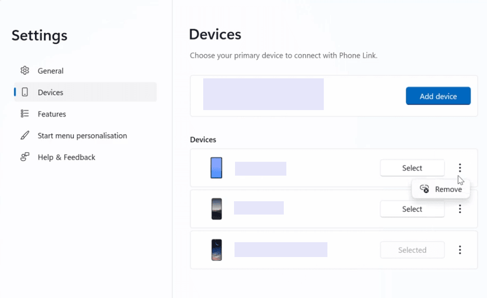 - Localisez le téléphone que vous souhaitez supprimer, cliquez sur les trois points (...) et choisissez Supprimer.
