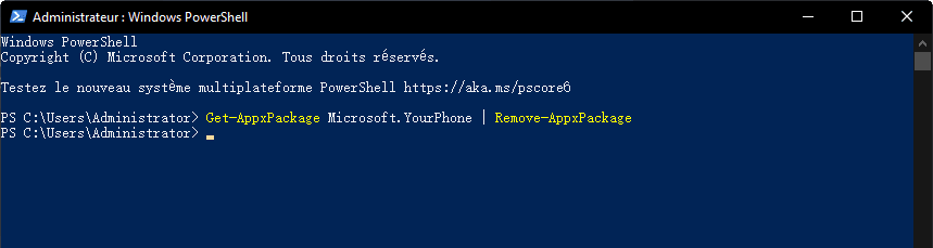 2. Désinstaller Mobile connecté Windows 11 avec PowerShell (Méthode radicale)