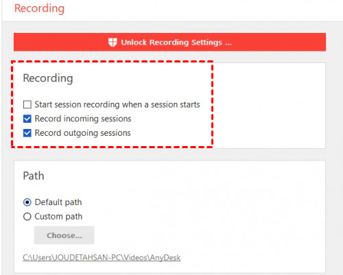 Unlike third-party screen recorders, AnyDesk records sessions natively within the app and stores them in a proprietary ".anydesk" format. These recordings can only be played back using the AnyDesk software.