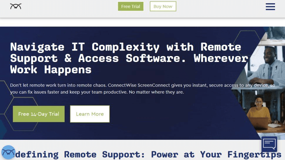ConnectWise ScreenConnect Support is a remote access platform designed to provide both attended and unattended support for desktop and mobile devices. It allows IT agents to communicate with users through chat and audio during support sessions.