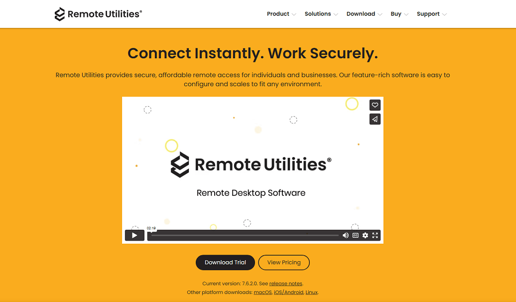 Remote Utilities for Windows offers an affordable solution for businesses looking for reliable remote access without the recurring subscription fees. Packed with advanced features, including file transfer, video calls, and session recording, it’s an excellent choice for companies seeking a cost-effective remote desktop connection manager.