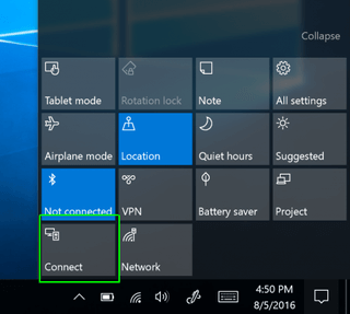 Step 2. Locate and select "Connect." This action prompts a display of available receiving devices, with your PC included.