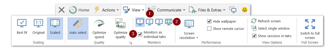 Step 4. Once connected, go to the View tab and select how you want to display the remote screens: