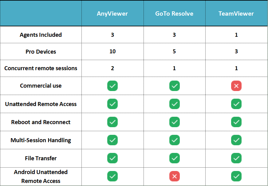 What is a better alternative to TeamViewer and GoTo Resolve? AnyViewer is a free remote support software. It offers users a completely free service. Besides, its free plan has more features than GoTo Resolve and TeamViewer. Let’s take a look.