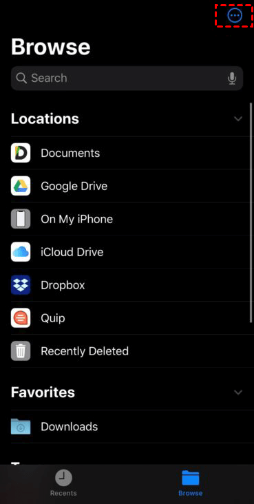 Step 5. Open the built-in Files app on your iPhone. Tap on the “triple-dot” icon located at the top-right corner.