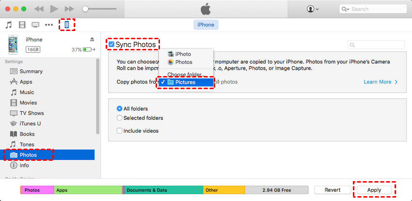 How to transfer photos from PC to iPhone 7 with iTunes