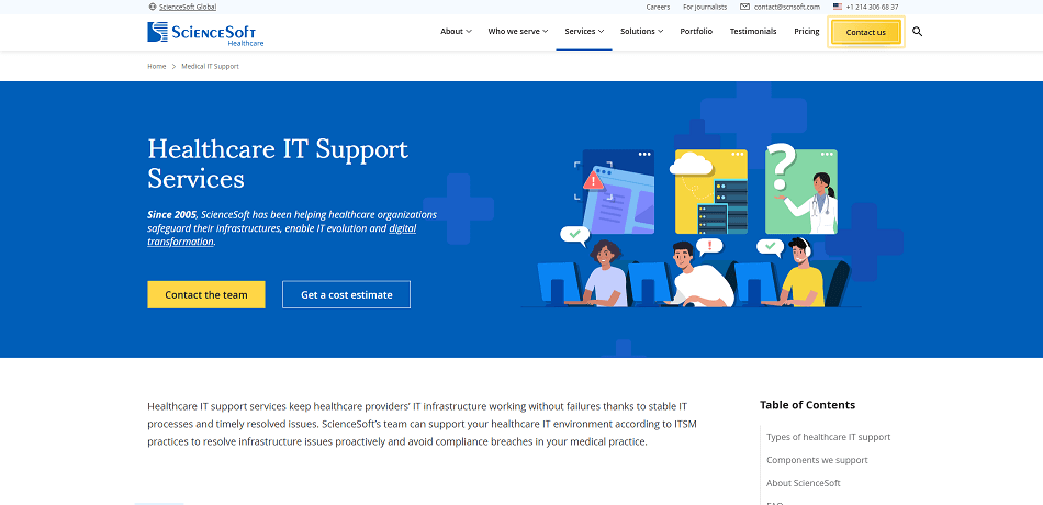 IT support helps healthcare providers keep systems running, secure patient data, and provide better care. Services from top providers like ScienceSoft, Medicus IT, The Scarlett Group, Tech Advisors, and Techmate make IT easier to manage.