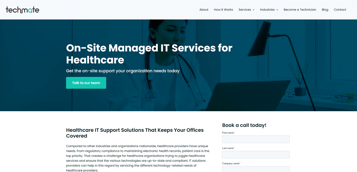 Techmate is a modern IT service provider that focuses on flexible, on-demand IT support for small and medium-sized businesses, including healthcare.