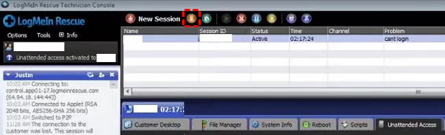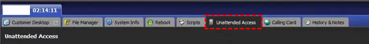 Step 1. While in an active session, click on the “Unattended Access” section.