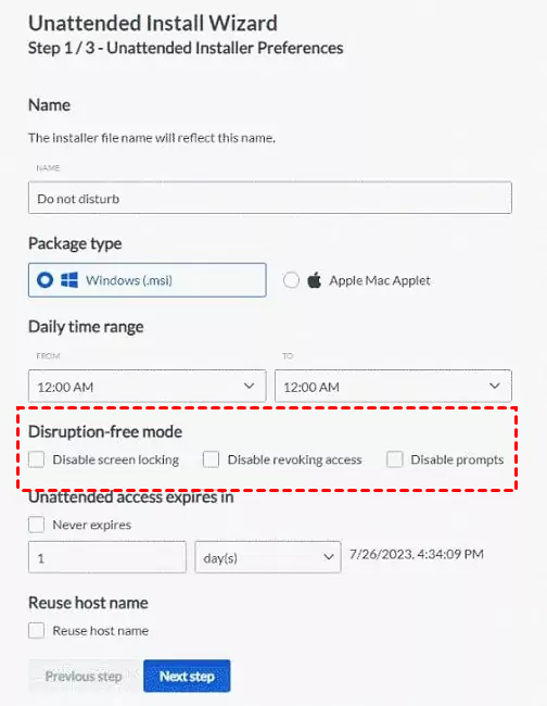 Step 1. Remove any existing unattended access service to allow deployment of updated installers.