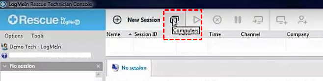 Step 1. Click the Computer icon on the session toolbar to view all devices.