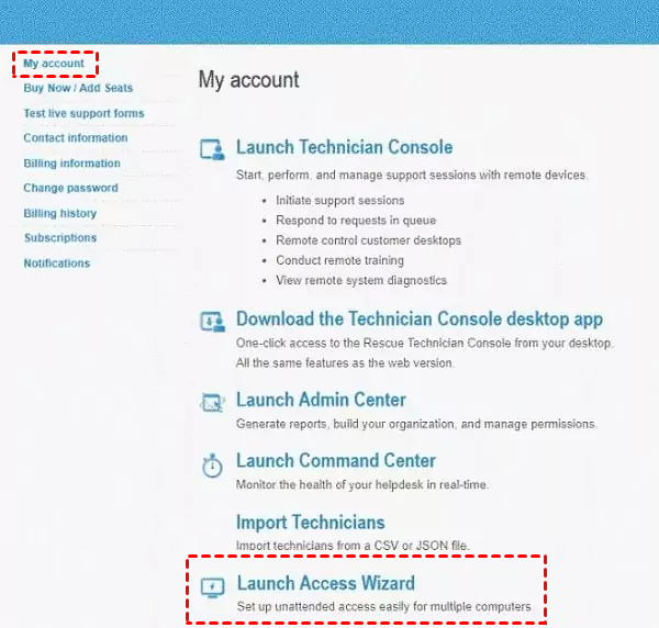 Step 2. Navigate to My Account and click Launch Access Wizard.