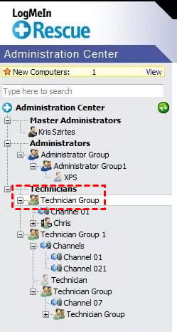 Step 1. Log in and select a Technician Group or root in the Organization Tree.