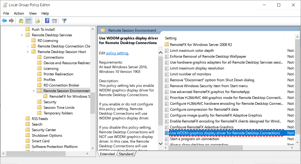Step 3. Look for the policy called "Use WDDM graphics display driver for Remote Desktop Connections".