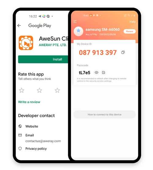 Step 3. Create an AweSun account and log in on both devices. Add the target device to your Device List for remote control.