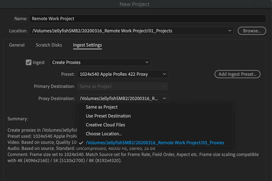 - Create a dedicated folder for proxies (/ProjectName/Proxies).