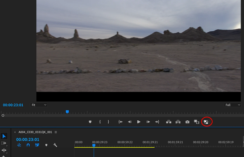 - Click the + icon in the Program Monitor to add the Toggle Proxies button.