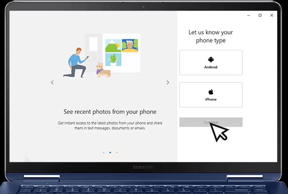 Step 3. Open Your Phone app on your PC, sign in to your Microsoft Account, click Android, and then Continue.