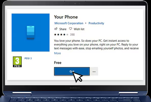 Step 2. Open the Microsoft Store on your PC, search for Your Phone, and click Get to download the app.