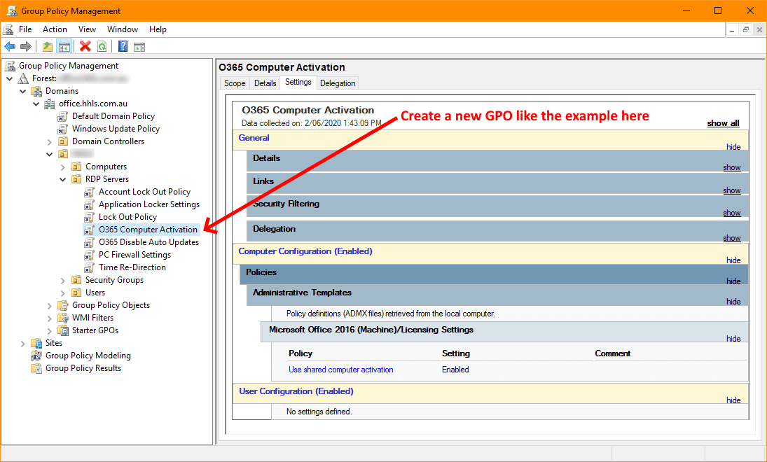 Step 6. Link the new GPO to the Organizational Unit that contains your Remote Desktop Session Host servers.
