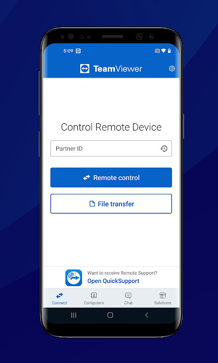 On the local device (the device connecting to the Android device), you must download and install the TeamViewer Remote Control app.