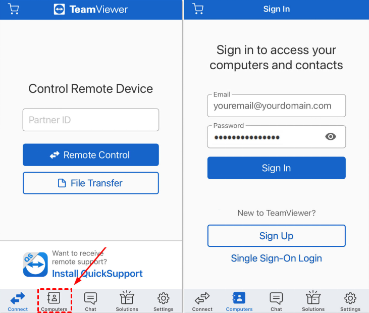 Pro-Tip: If you are connecting from a computer, ensure you have the TeamViewer remote desktop client installed.