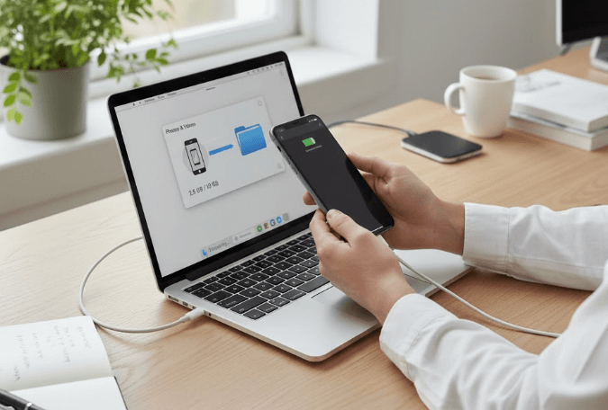 A wired connection via the Photos App is theoretically fast but often crashes during bulk transfers. For a more stable experience with thousands of items, AnyViewer is recommended because it manages the connection more efficiently than the standard Windows MTP protocol, reducing the risk of the transfer hanging halfway through.