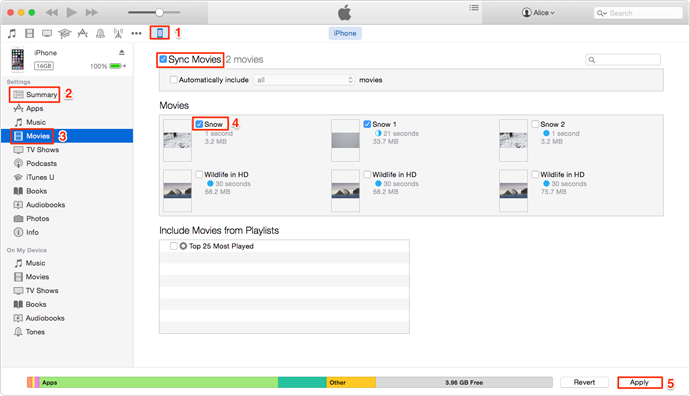 Step 5. Go to Movies or TV Shows, select the videos you want, and click Sync.