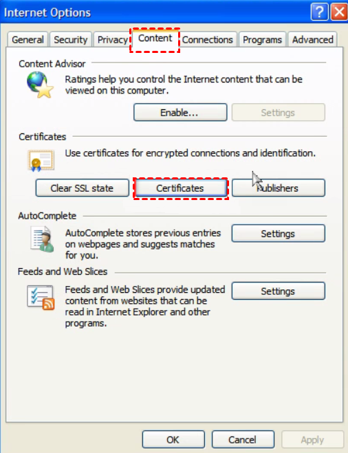 Step 1. Verify whether the certificate on your computer has expired or is untrusted. In the case of using Internet Explorer, access the Tools menu, proceed to Internet Options, navigate to the Content tab, and click on the Certificates button.