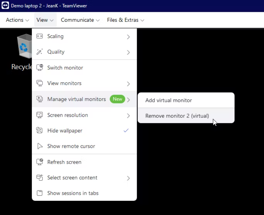 You have now successfully added a virtual monitor and can work with multiple remote screens during the session. If needed, you can return to Manage virtual monitors and remove the virtual monitor at any time.